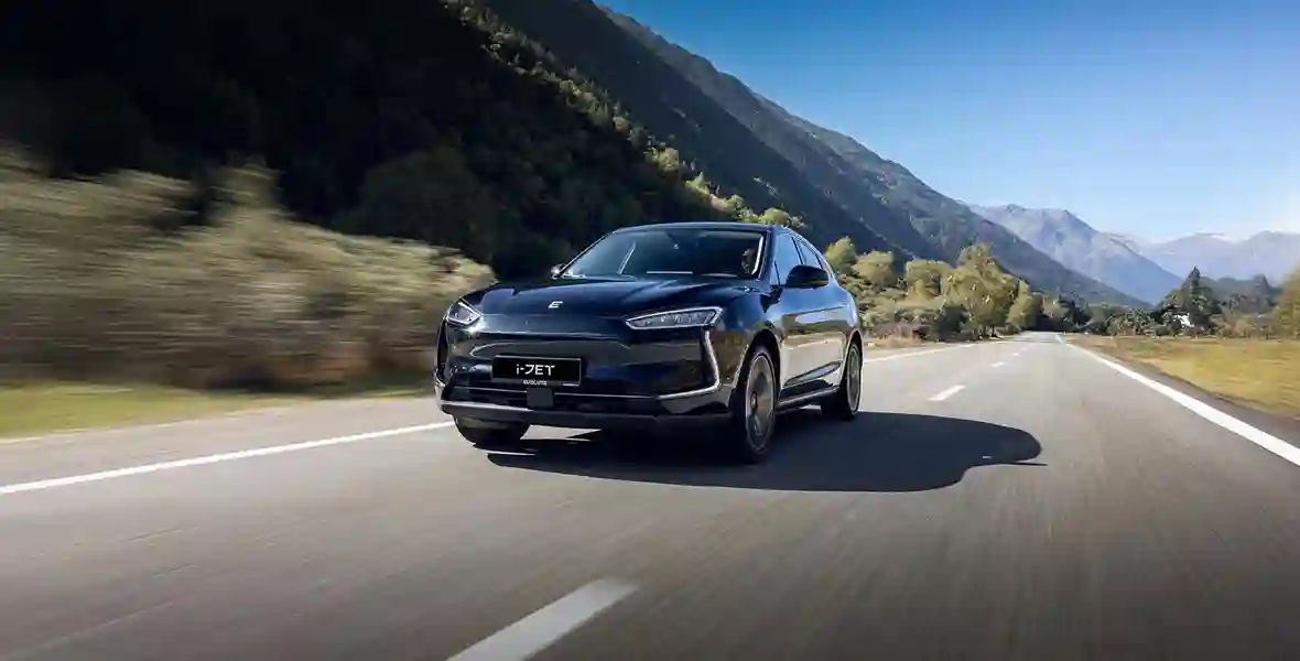 Из-за приземистого силуэта с покатой крышей EVOLUTE i‑JET не кажется крупным, хотя длина у него немаленькая — 4710 мм. При этом уже в стандартном оснащении (i‑JET продается в единственной комплектации) — 20-дюймовые колеса. А отличия от Seres Aito М5 сводятся к иному оформлению передней и задней светотехники и отсутствию решетки радиатора. Это неспроста!